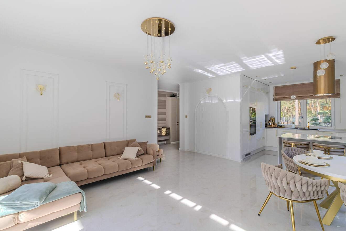 Dom wykończony w 2024 roku z najwyższej jakości materiałów, nietuzinkowy styl z dbałością o detale, wnętrze stworzone ze smakiem i delikatnością stonowanych kolorów, bieli, beżu i złota. Gotowy na Twoje potrzeby bez dodatkowych nakładów.